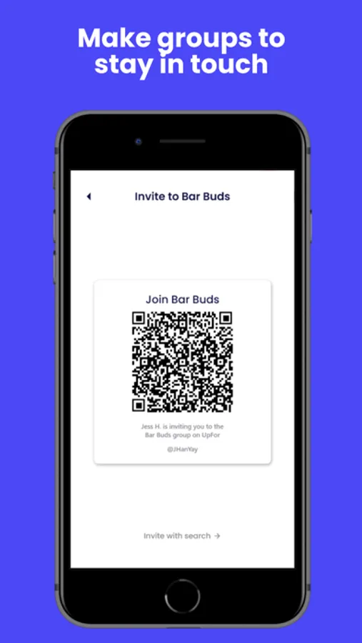 Exchanging numbers with several people at once can be a hassle. Start a group on Upfor and add them in the moment with a QR code.