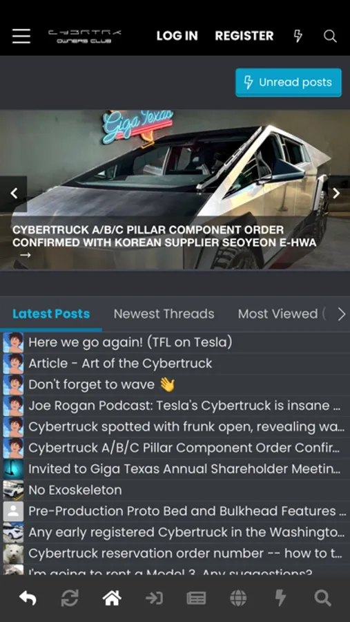 Community app for the Tesla Cybertruck forum at Cybertruckownersclub.com. Browse as a guest or log in to use native push notifications for alerts and conversation messages.