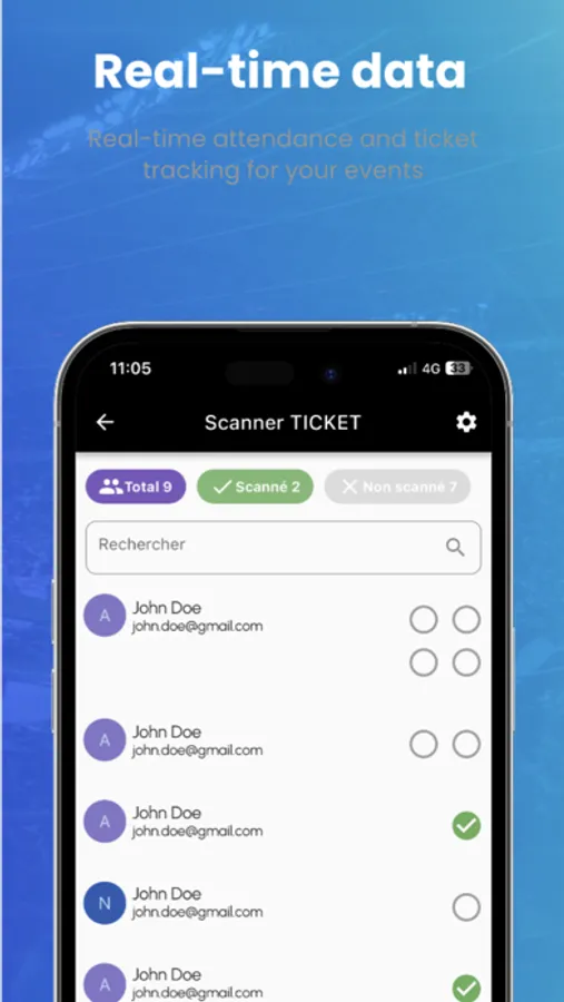 Our ticket scanning application is the ideal solution for facilitating the check-in process at your events. Thanks to the app's ultra-fast scanning technology, you can quickly validate your attendees' tickets in a matter of seconds, providing a smooth and efficient check-in process.