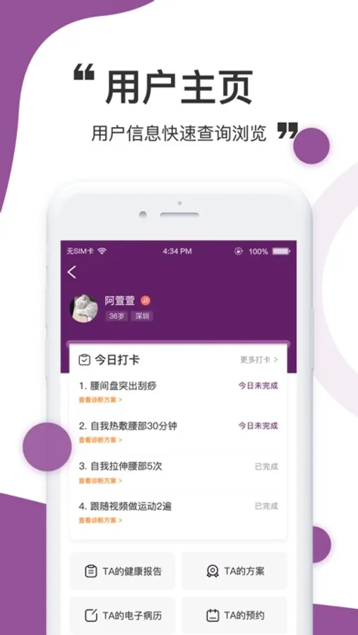 医阡陌运用中医适宜技术以及数字化健康平台,研发、推广、并创新慢性肌骨疼痛诊疗与管理。通过自主研发的智能肌骨疼痛诊断与管理系统,专业的健康管理师及医生团队,以及以用户为中心的产品服务体验,我们为每一位登录平台的用户量身打造线上线下相结合,从居家自疗到实体转诊的全天候智慧医疗解决方案。用户登录APP后,依据自身情况以及自己的疼痛症状和感觉,完成线上疼痛预诊,即可获得疼痛疾病的初步预判和预防、保健、干预、康复方案。线上方案包括如何使用多种能够自我操作、无风险的中医适宜技术和健康产品,并辅以健康管理师提供24小时的使用指导,随时解决用户疑难问题,为有所需要的用户提供更加便捷的疼痛管理。