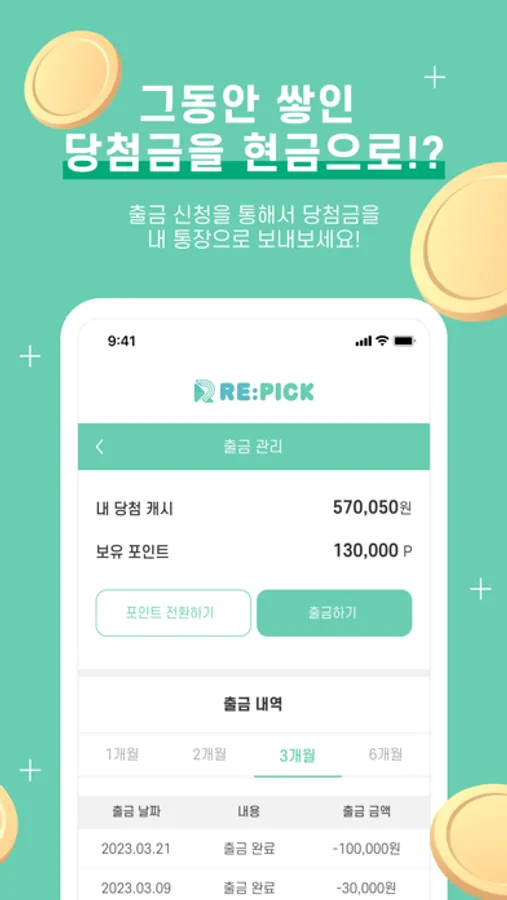 - 현금출금을 신청하면 일주일 이내에 내 통장으로~!