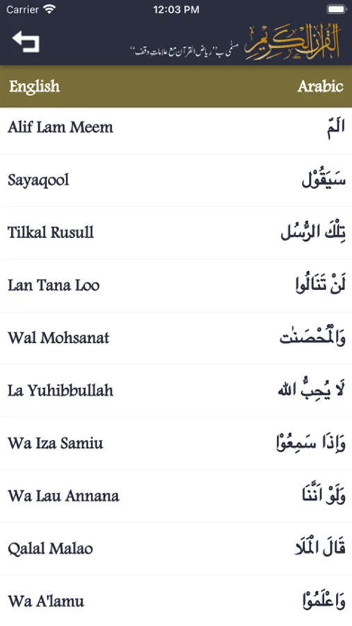 4. Sura'h List option to directly go to the specific Sura'h is available.