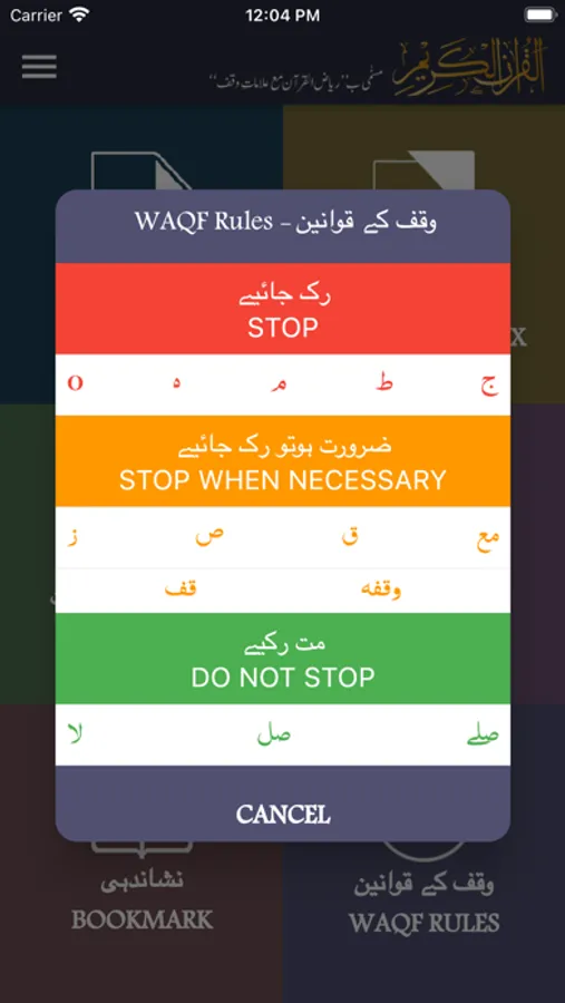 2. WAQF Symbol for STOP, DO NOT STOP & STOP when necessary is highlighted with the different color for convenience of the reader.
