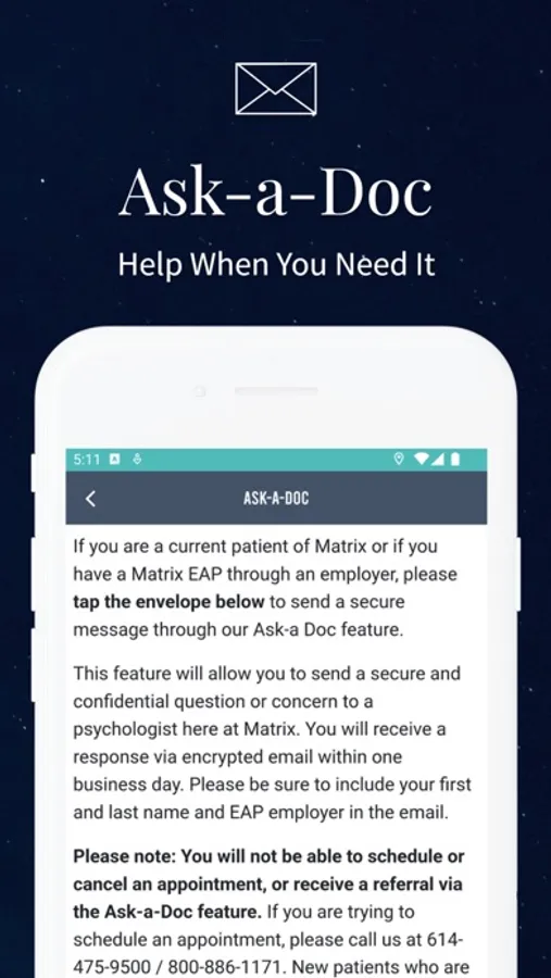 For employees of companies who partner with Matrix for their EAP, this app provides immediate availability of Matrix services, either for a crisis or just for routine help.