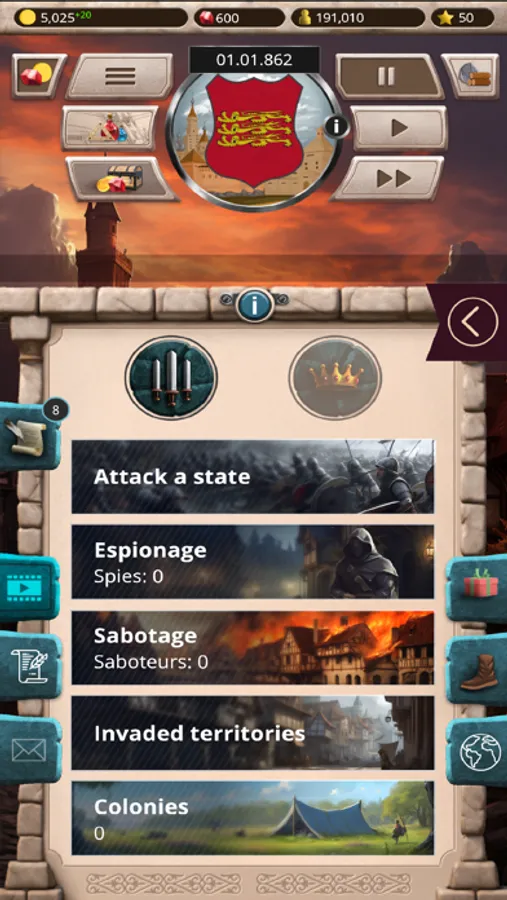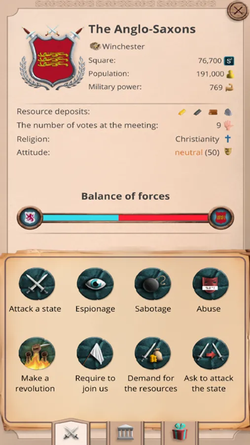 To succeed, engage in wars with your rivals. Raise your own army and fleet, declare wars or start fighting in them when they are in full swing. Deploy spies and send saboteurs to your enemy country to find out what they are going to do. Invade states, conquer lands and capture rare resources.