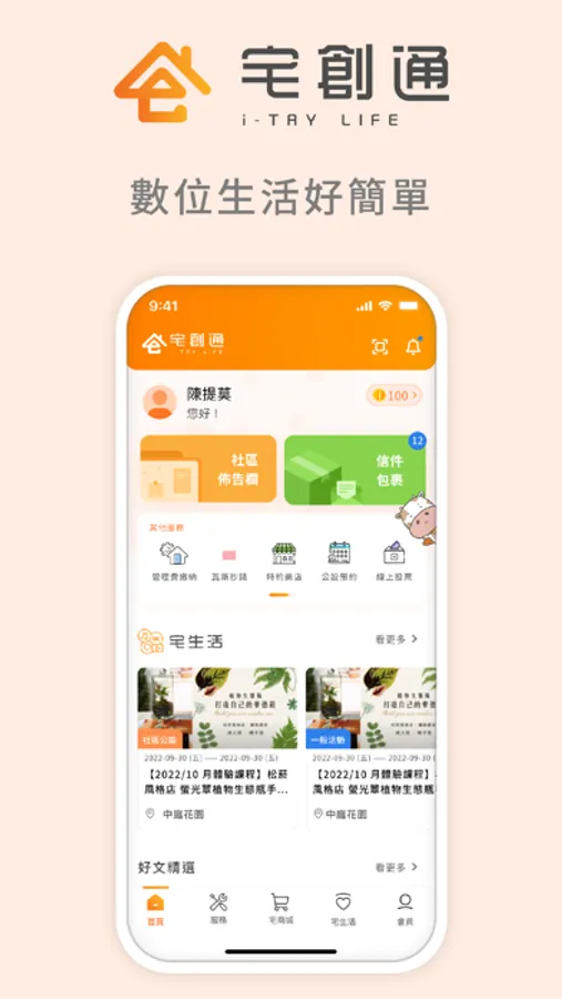另外宅創通獨創繳納管理費可獲得1:1 i幣點數回饋,1點折抵1元,可在宅商城消費,1站購足生活所需;我們也提供宅生活的服務,包含獨家的試用體驗活動,即時掌握社區活動資訊,豐富的活動通知不漏接,使用宅創通為生活加值!