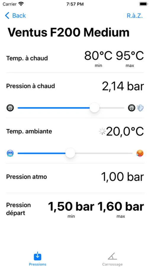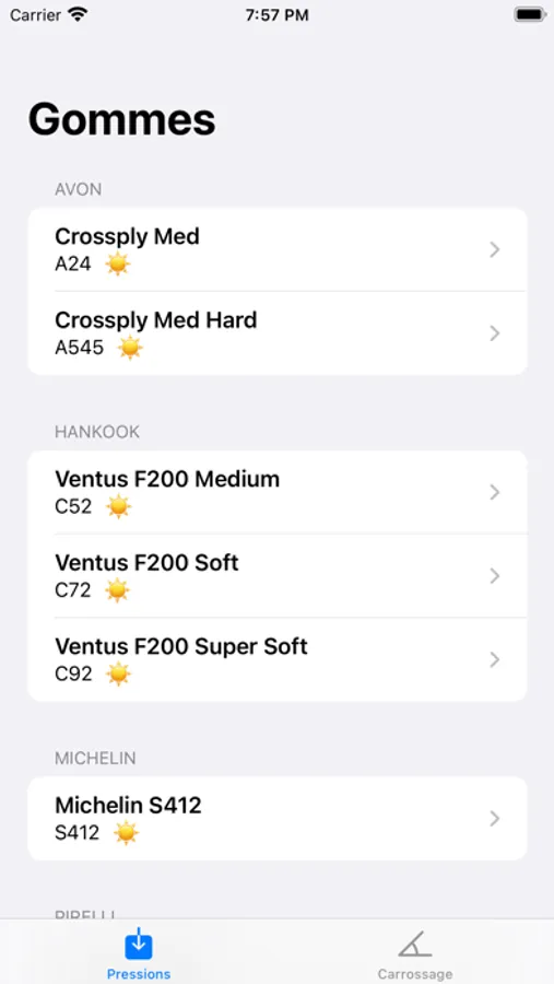 - connaitre les pressions de départ à mettre dans vos pneus en fonction du type de gomme choisi et des conditions atmosphériques actuelles.