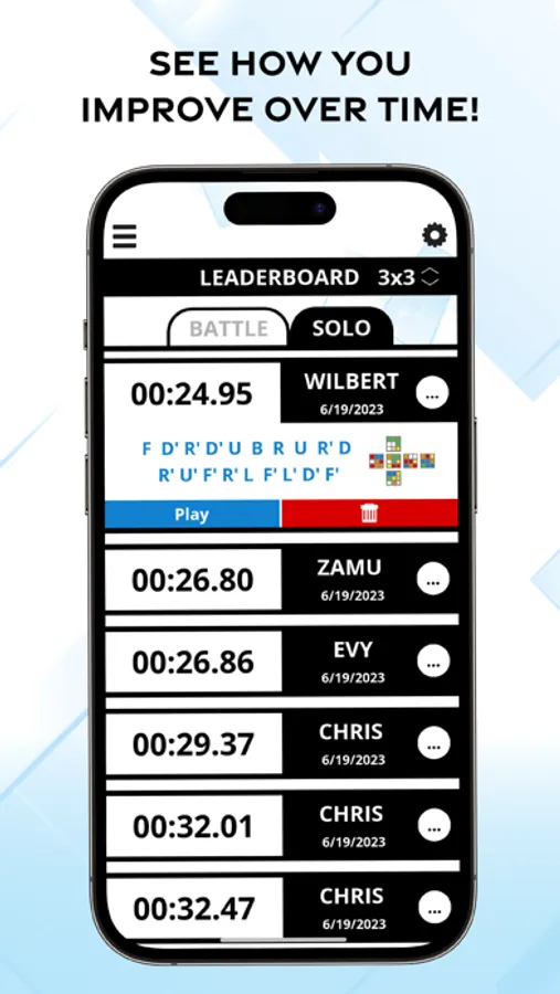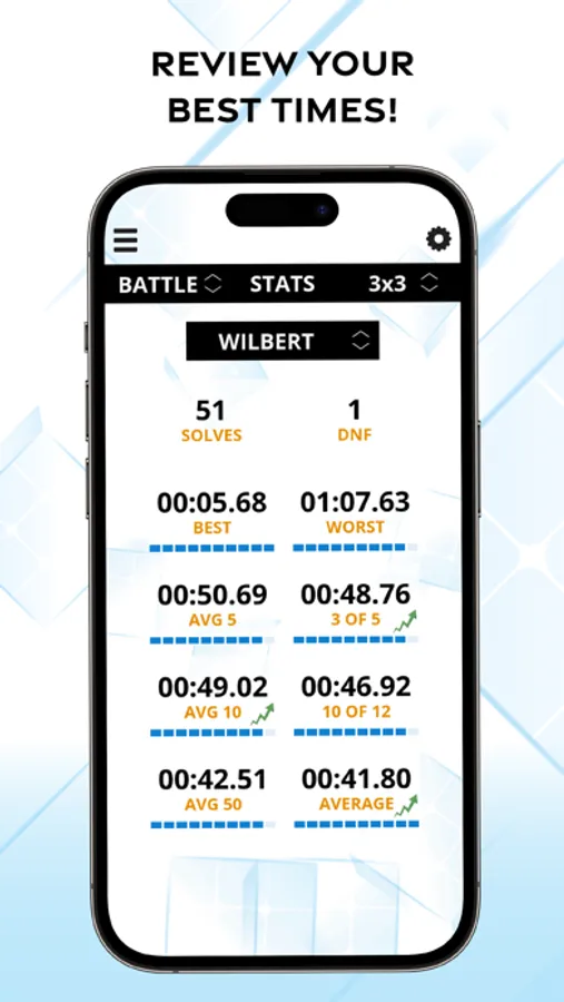 ◆ See average times, 3 out of 5, 10 out of 12, last 50 and more statistics.