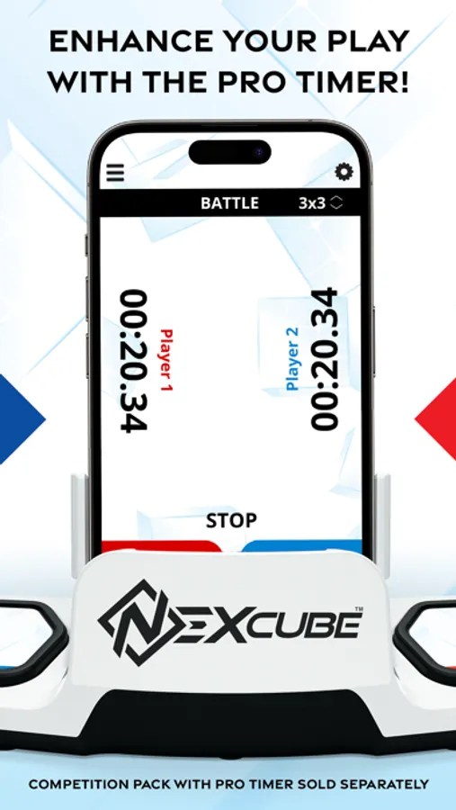 Now available: the Official NexCube App to measure, store and analyse your best solve times. Unique is the Competition Mode in the app! You can instantly start a battle on your phone and record both times.