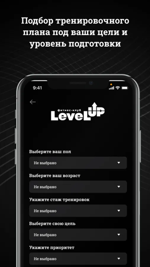 Локальное спортивное приложение для составления персонального тренировочного плана для вас в фитнес клубе LEVEL UP в Красноярске.