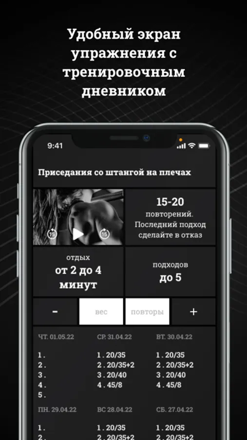 Мгновенный доступ к записям рабочих весов к каждому упражнению
