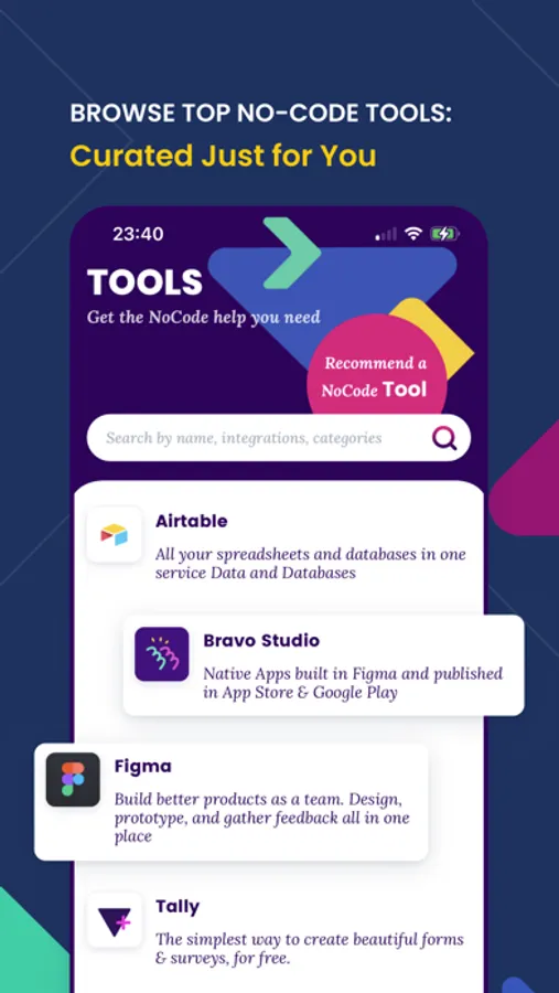 Understanding the importance of creativity and innovation in digital ventures, the app is dedicated to helping you bring your ideas to life. Access the necessary tools and resources to turn your unique visions into reality, allowing you to concentrate on your projects. Benefit from a comprehensive resource center with tutorials, videos, and educational content, helping you effectively utilize no-code tools.