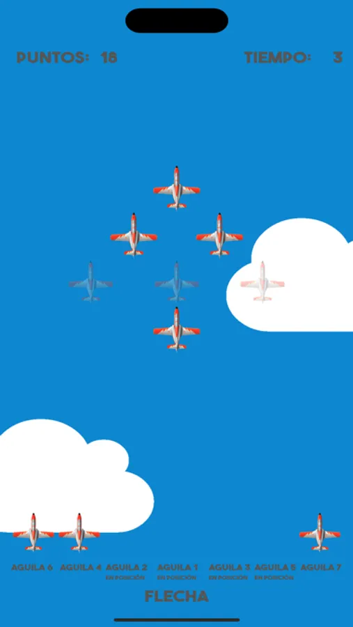 A partir de una formación inicial, hay que colocar a los Águilas a su puesto determinado en cada una de las formaciones que te aparecerán de forma aleatoria. Cada Águila tiene su puesto determinado en formación. Si se consigue completar la formación, se parará el tiempo para que puedas hacer aparecer otra y así de manera sucesiva. La dificultad del juego radica en que cuanta más puntuación obtengas, menos tiempo tendrás para finalizar la colocación de los Águilas. El Mirlo, el Cisne, la Cuña, la Pescadilla, la Flecha o el Póker son algunas de las formaciones o figuras que dibujarás en el cielo. La Patrulla Águila española tiene un lema en latín: " Jucti sed non uncí" que significa Juntos pero no revueltos. El tradicional e irónico lema de una de las mejores escuadras acrobáticas del Mundo. Sus pilotos, escogidos de entre los mejores de las Fuerzas Armadas Españolas. El "aparato" es el CASA C-101 un avión en el que hasta hace bien poco se han formado cientos de pilotos del Ejército del Aire y del Espacio.