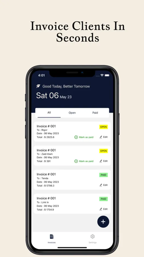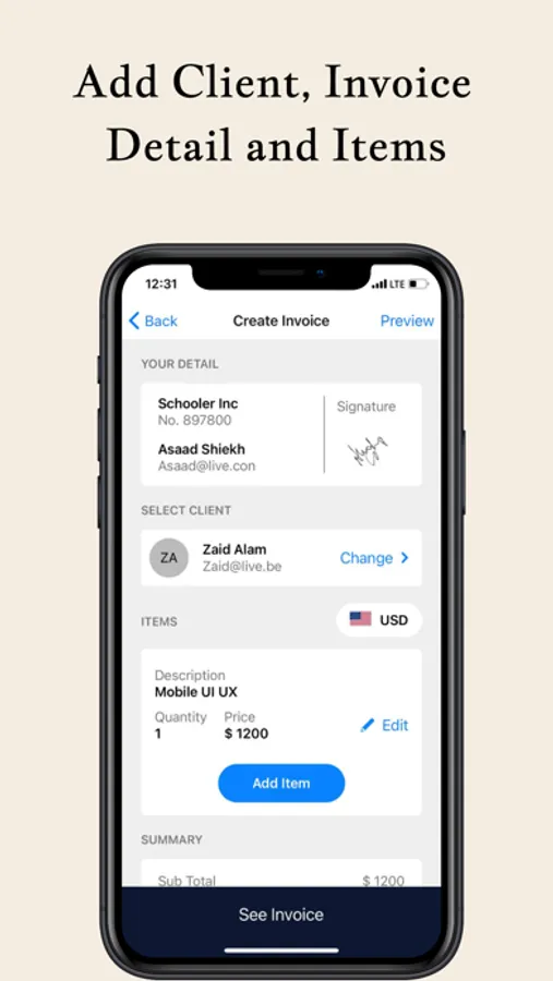 Intelligent Invoice Generation: Our intelligent AI-powered technology ensures accurate calculations and creates polished invoices in seconds. Focus on your business while our app takes care of the invoicing details.