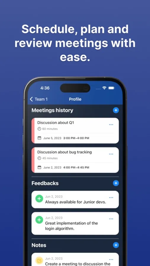 Meeting Tracker: Schedule and track your meetings. View upcoming and completed meetings at a glance.