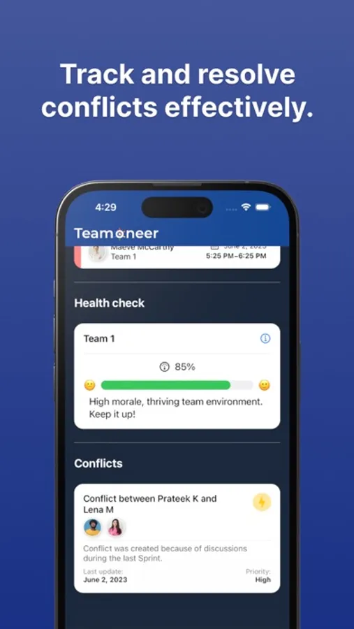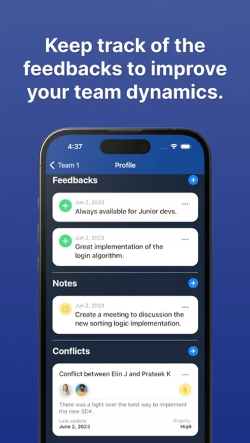 Conflict Resolution: Log and resolve conflicts between team members. Our innovative feature provides guidelines for conflict resolution to ensure harmonious team dynamics.