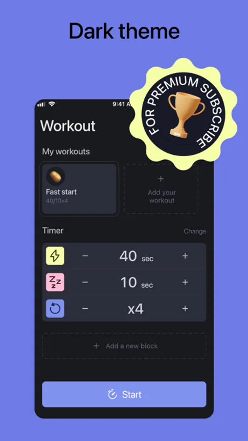 By activating a subscription, you can add an unlimited number of workouts. This is useful for those who want more variety in training and often change them. In addition, you will have access to a dark theme that will definitely appeal to those who train in the evening, or just like dark interfaces.