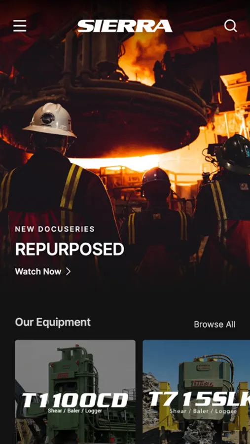 Welcome to the Sierra International Machinery app. Stream our groundbreaking REPURPOSED docuseries, browse our machines, listen to our podcast, and stay up to date with the latest from Sierra.