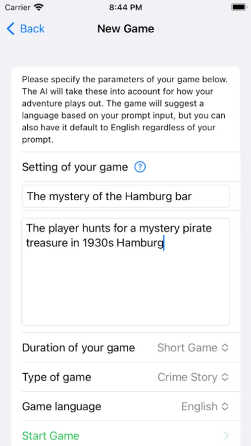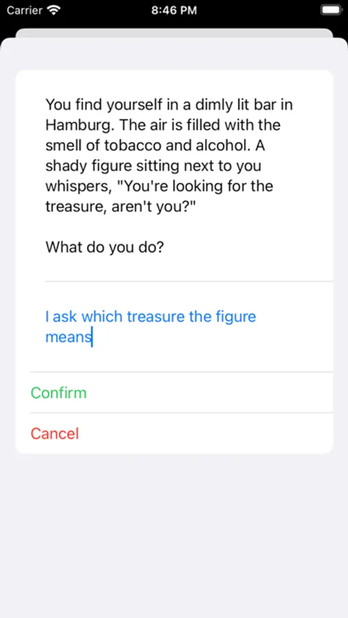 An app reminiscent of classical text adventures. Define your own setting and let the AI take care of the rest.