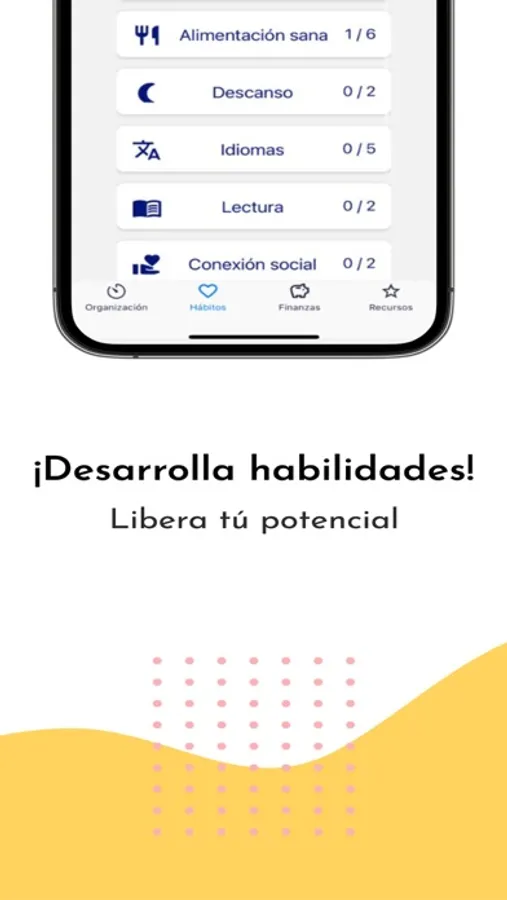 Dentro de la app podrás encontrar servicios de gestión del tiempo, desarrollo de hábitos, seguimiento de finanzas personales, oportunidades increíbles para tu desarrollo, y contenido de alto valor.