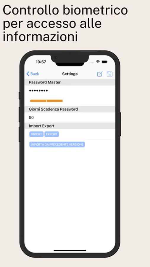 L'App per il salvataggio delle password pensata per chi non vuole inviare i suoi dati sensibili nel cloud. Permette il salvataggio di ogni tipo di password e er ogni tipo di utenza. Utilizza il rilevamento dei dati biometrici per visualizzare le password. Se non disponibili verrà utilizzata una master password.
