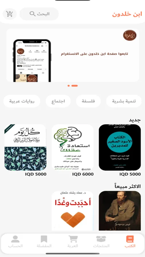 تطبيق الكتروني يساعدك في العثور على كتبك و منتجاتك المفضلة بكل سهولة و شراؤها عن طريق الانترنت مع خدمة توصيل الى كافة محافظات العراق.