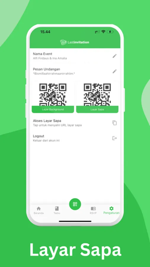 8. Check In dengan QR Code: Fitur ini memungkinkan pengguna untuk mencetak kode QR dan meletakkannya di lokasi acara. Setiap tamu akan diberikan kode QR yang unik saat mereka menerima undangan. Ketika tamu datang ke acara, mereka dapat memindai kode QR dengan aplikasi dan kemudian melakukan Check In. Hal ini akan memperbarui status kehadiran mereka dalam daftar tamu.