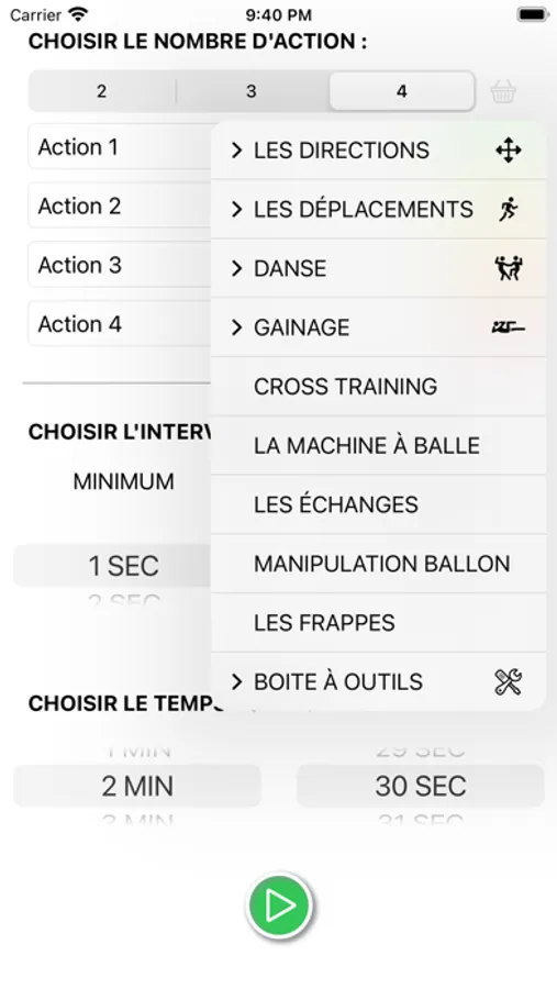 L’objectif de l’application est de demander aux élèves de « changer » d’action dans un laps de temps. Par exemple, nous pouvons demander aux élèves de faire des échanges dans une activité de raquette (Tennis de table, badminton,…). Cependant, il peut y avoir des échanges face à un partenaire ou face à un adversaire. L’intention et les actions motrices sont différentes. L’application permet de décharger l’enseignant ou un élève de gérer ces consignes et le temps.