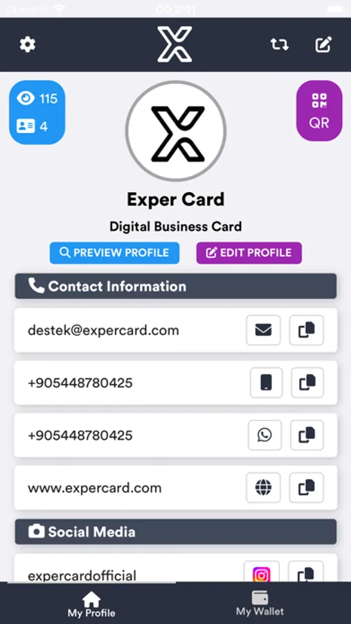 Exper Card is a modern and user-friendly digital business card application designed for professionals looking to embrace digitalization in the business world. Without the need to carry physical business cards, you can easily share your contact information and expand your network. Exper Card helps you quickly create and manage your digital business cards in an environmentally friendly way.