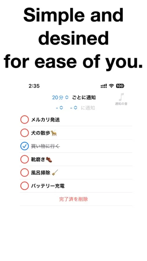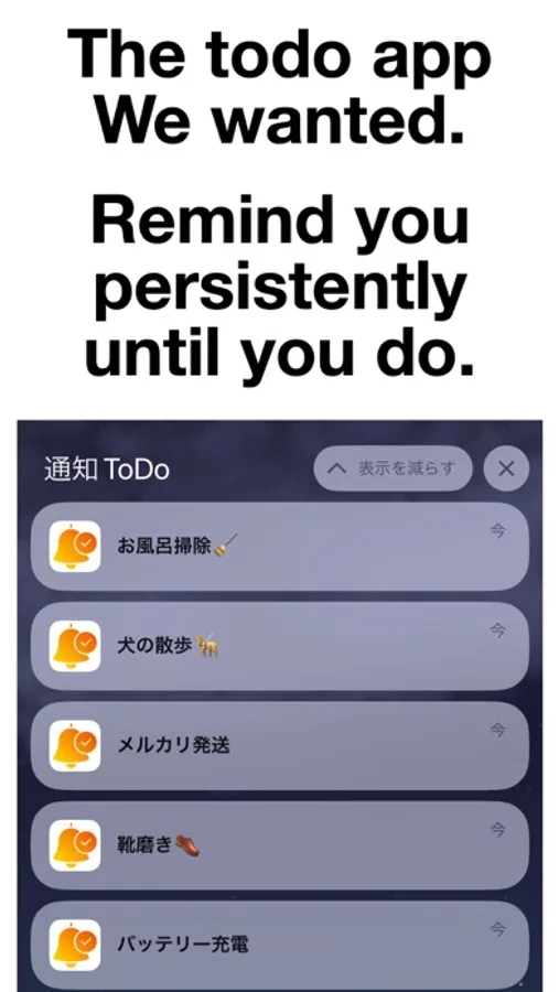 It is a Todo app that reminds you with notifications just by registering things to do.