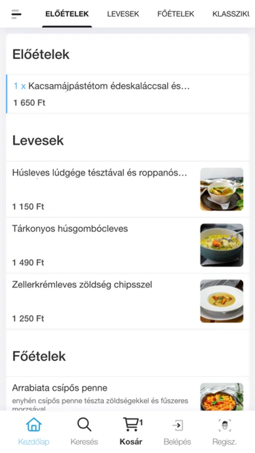 - Keresés az étterem menüjében: böngéssz az étterem teljes kínálatában, és válassz előételekből, főételekből, desszertekből és italokból.