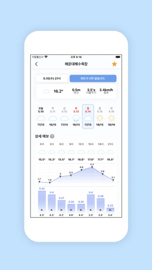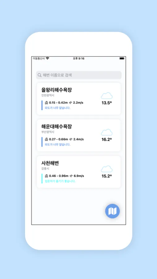 파도를 기다리는 서퍼들을 위한 날씨 앱입니다.