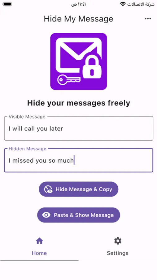 This can be done by typing your visible message which will be shown to everyone in Visible Text field then type your hidden message in Hidden Message field which will be encapsulated and hidden magically behind the visible text, finally you press the “Hide Message & Copy” button and your visible message(which hides the hidden message) will be copied to Clipboard.