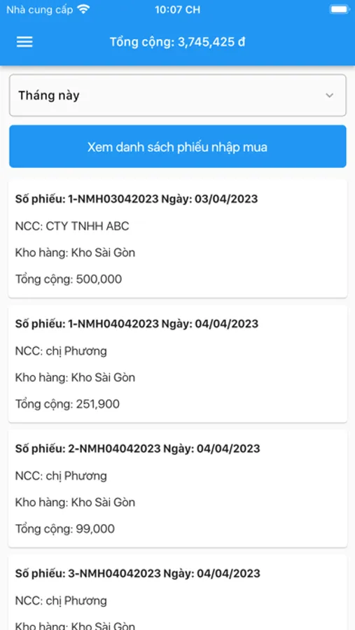 - Quản lý phiếu nhập mua hàng từ nhà cung cấp