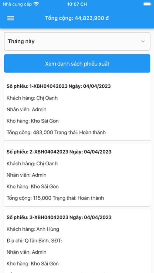- Quản lý phiếu xuất bán hàng cho khách hàng