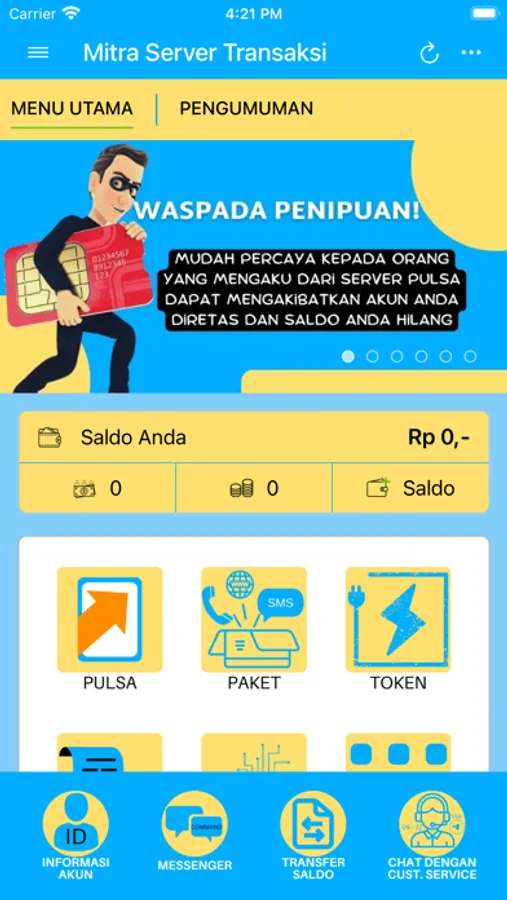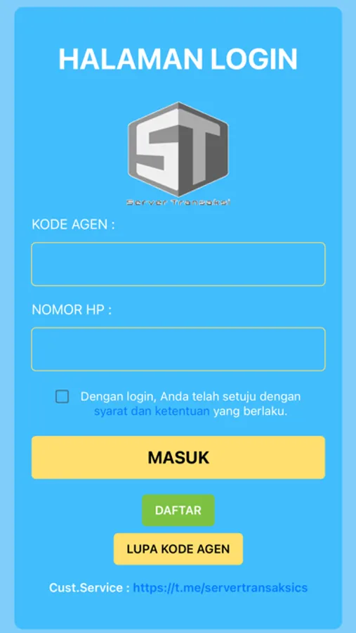 Anda harus menjadi anggota / member di Server Transaksi terlebih dahulu untuk bisa menggunakan aplikasi ini.