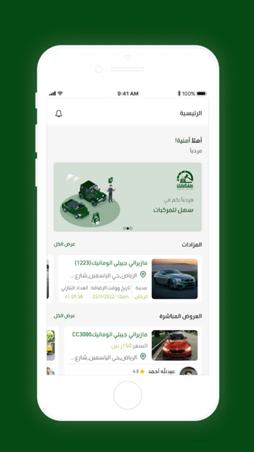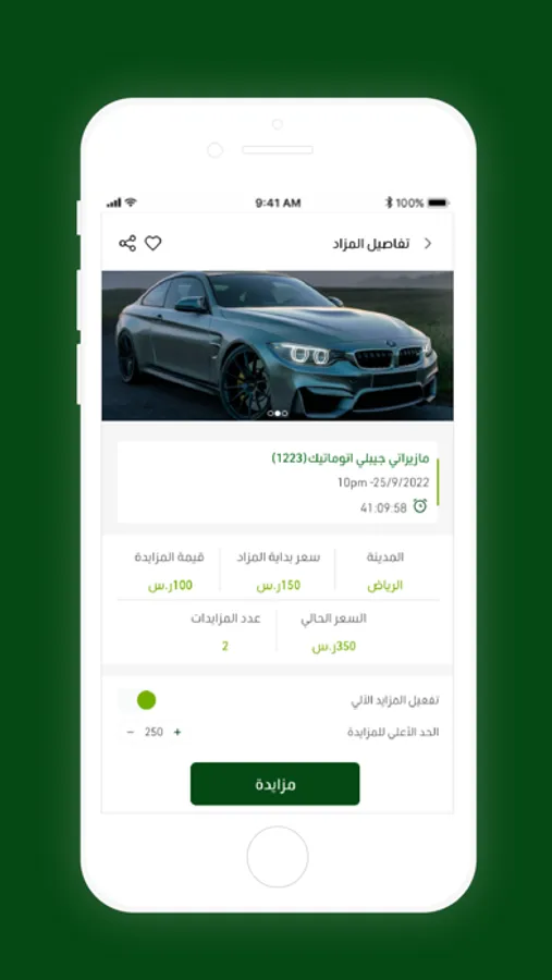 منصة الكترونية تسمح للمستخدمين ببيع او شراء السيارات بجميع حالاتها (جديد ، مستخدم ، مصدوم ) عن طريق خدمة المزاد او العروض المباشرة او المعارض كما يمكن للمستخدمين المشاركة في المزاد عن طريق المزايده اليدويه او المزايد الالي لحين انتهاء فترة المزاد واتمام عملية الشراء بعد معاينة السيارة حسب الشروط المتفق عليها.