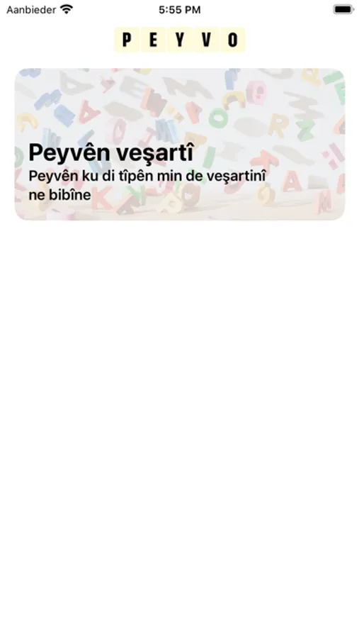 Di Peyvo de, hûn ê lîstikê ku ji we re ji bo afirandina peyvên nû yên bi tîpên veşartinî bikar bînin, dîtin. Di vî lîstikê de, hûn ê pêşî li peyvên veşartinî di nav tîpan de bikin, hûn ê hîn bibin û zanînên xwe yên zimanê Kurdî bêhtir bikin.
