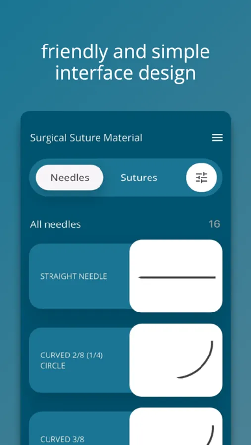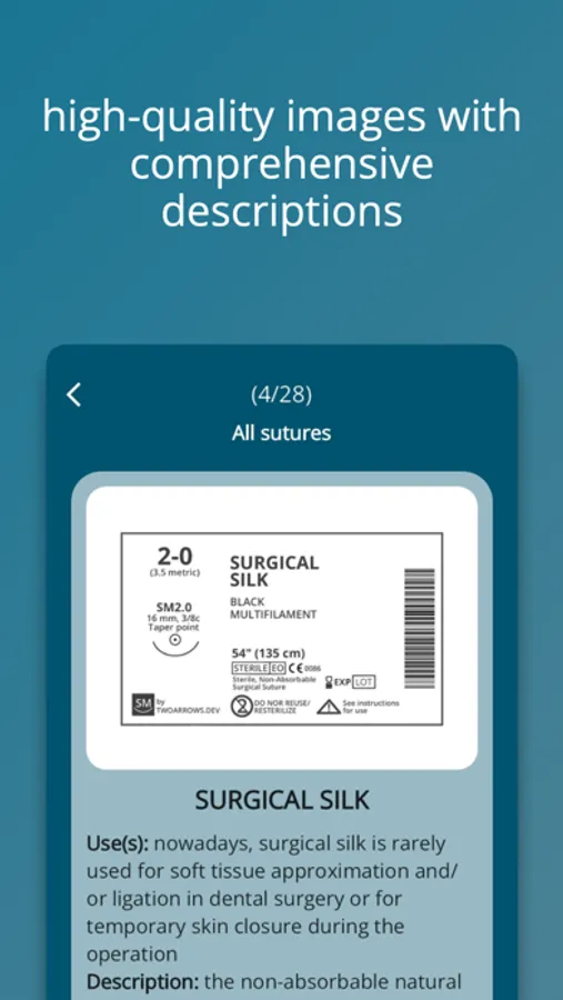 1) high-quality images of surgical needles and suture material with comprehensive descriptions