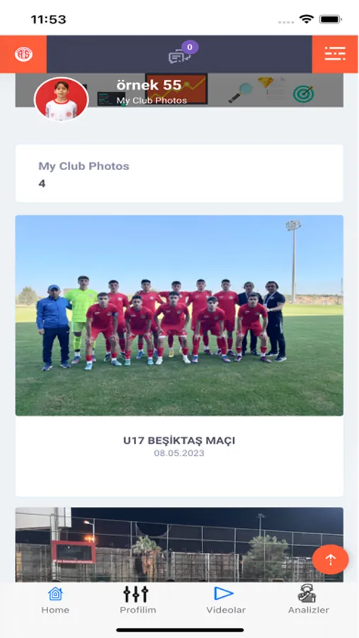 Sizin ve takımınız için girilmiş resim ve videoları izleyebilirsiniz.