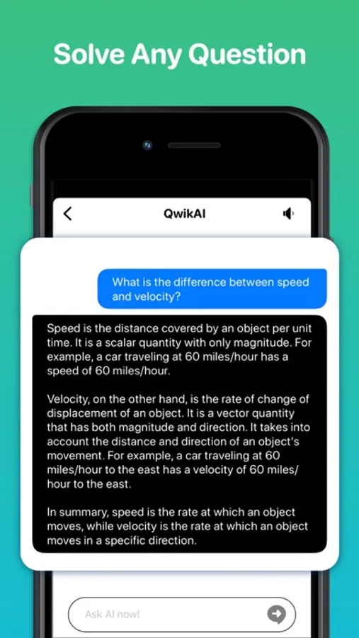 With its futuristic algorithms, the QwikAI app can respond to a wide range of queries on a variety of subjects, from math problems to general knowledge questions. It is the ideal tool to assist you if you're having trouble solving a problem or need information.