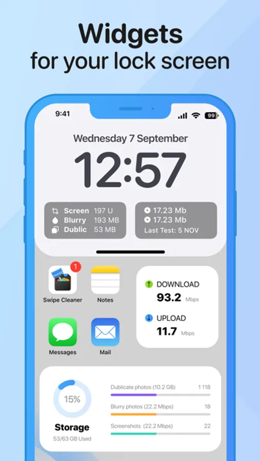 But wait, there's more! Swipe Cleaner also includes a range of widgets that make it easy to stay connected and access important information quickly. You can customize your widgets to show how healthy your memory is and your internet connection speed