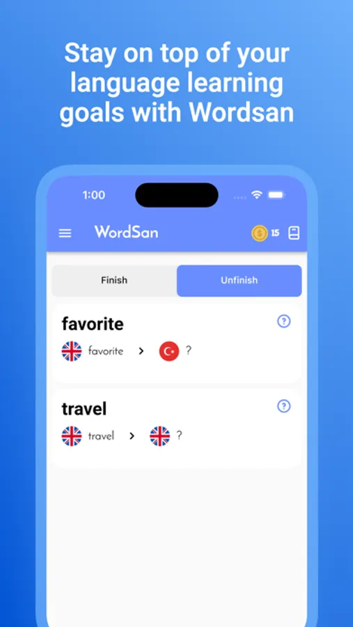 Wordsan is a mobile application designed to help users improve their English vocabulary. With Wordsan, you can easily save new words and their meanings, and set reminders to practice and reinforce your learning. This app is perfect for anyone looking to expand their English vocabulary and improve their language skills. Stay on top of your language learning goals with Wordsan!