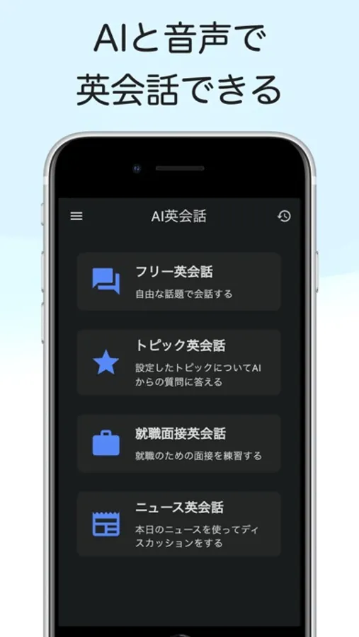 非常に自然に近い会話をAIと行うことができます。簡単な会話のトピックを設定すれば、AIから話題を広げてくれるので気軽に英会話をすることができます。