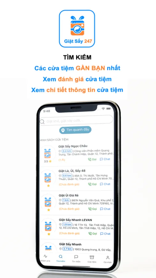 Bên cạnh đó, tính năng tìm kiếm Quanh Đây để tìm thấy Cửa Tiệm Giặt Gần Nhất, chat trực tiếp, đánh giá và phản hồi của khách hàng cũng giúp cho khách hàng và chủ cửa tiệm có thể tương tác với nhau một cách dễ dàng và nhanh chóng.