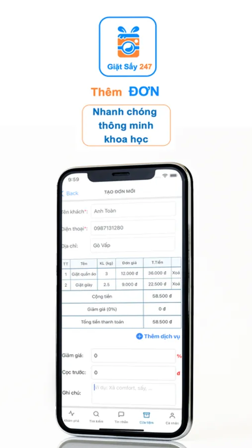 Tính năng quản lý khách hàng cũng là một điểm nổi bật của Giặt Sấy 247. Nó cho phép chủ cửa tiệm quản lý thông tin khách hàng và lịch sử giặt một cách chính xác và hiệu quả. Việc này giúp cho cửa tiệm có thể cung cấp dịch vụ tốt hơn cho khách hàng của mình và đồng thời tạo ra một trải nghiệm khách hàng tốt hơn cho việc giảm giá.
