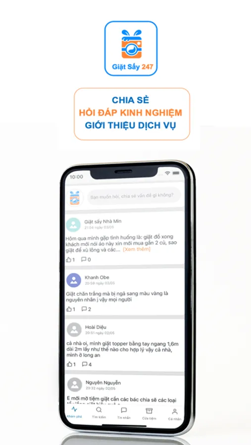 Giặt Sấy 247 còn cho phép khách hàng và chủ cửa tiệm trao đổi thông tin, hỏi đáp các vấn đề liên quan đến giặt sấy, giặt ủi, giặt là, chia sẻ kinh nghiệm, giới thiệu dịch vụ, quảng bá dịch vụ và nhiều hơn nữa.