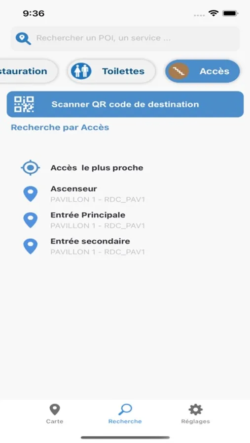 Gagnez du temps en choisissant le point de restauration ou les toilettes les plus proches de votre position.