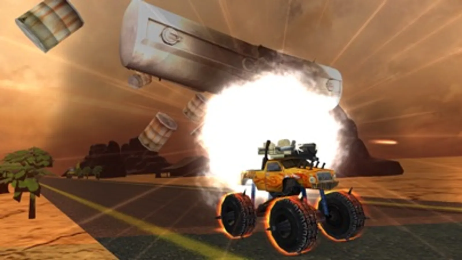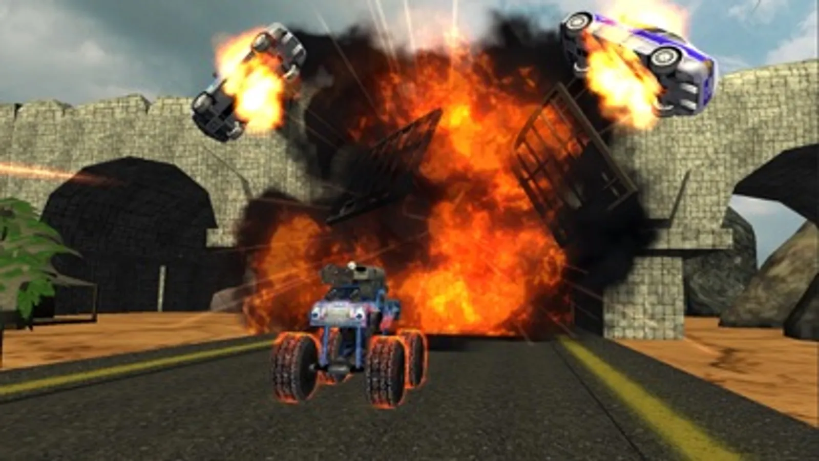 Choose your Crazy Monster Truck between Mafia, Mobster, Bandit and Robber. Fight on different stunning environments Desert, Snowy Mountains and Jungle. Enjoy the new power-ups.