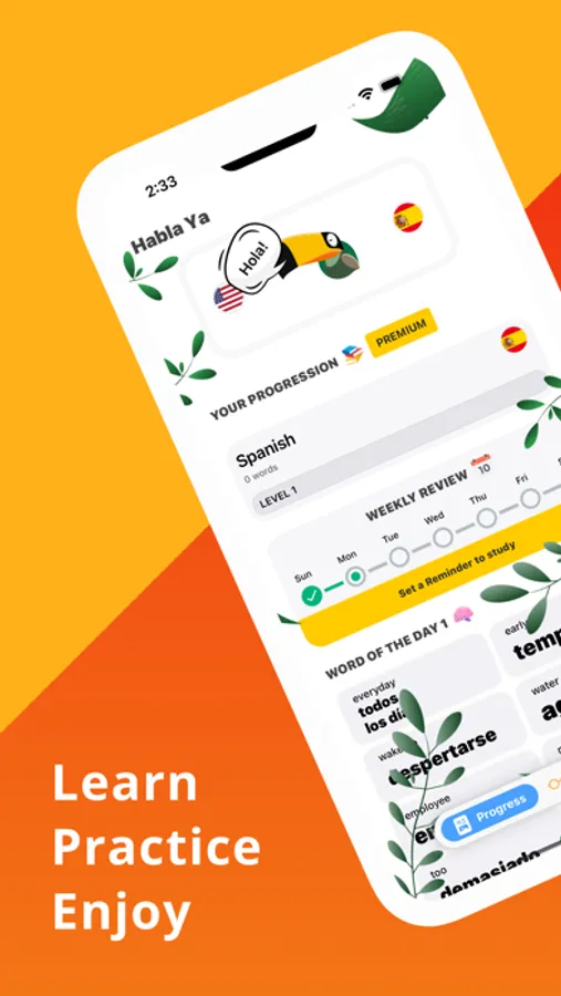 With Habla Ya - Learn Spanish, you can learn 10 new Spanish words per day. This is the best way to improve your Spanish vocabulary really fast. And because we have a lot of different exercices, your journey to the new language is going to be fun.